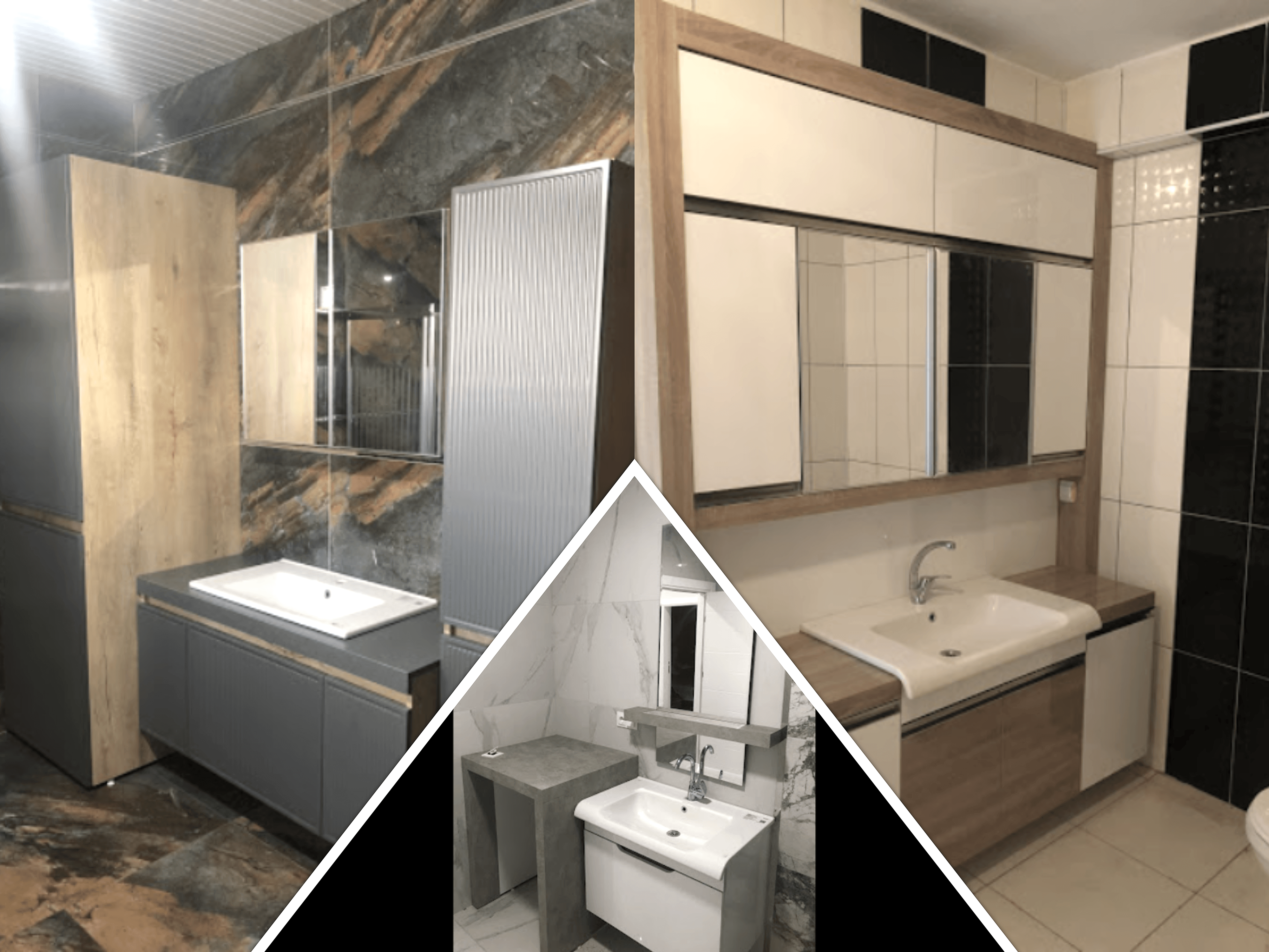 Kalite, dayanıklılık ve kullanışlılık esas önceliğimiz olmakla birlikte banyo dolabı tasarımlarımızı modern ve şık görünümleriyle sizlerin beğenisine sunuyoruz.
